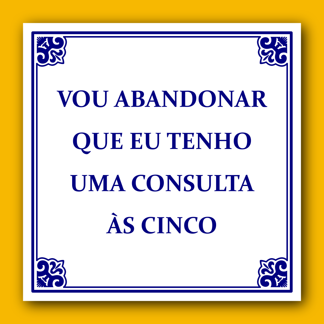 Consulta 7,00 € Desconto de %. IVA incluído. Partilhar Comprar Contactar Coleção Frases do Público: Vou abandonar que eu tenho uma consulta às cinco