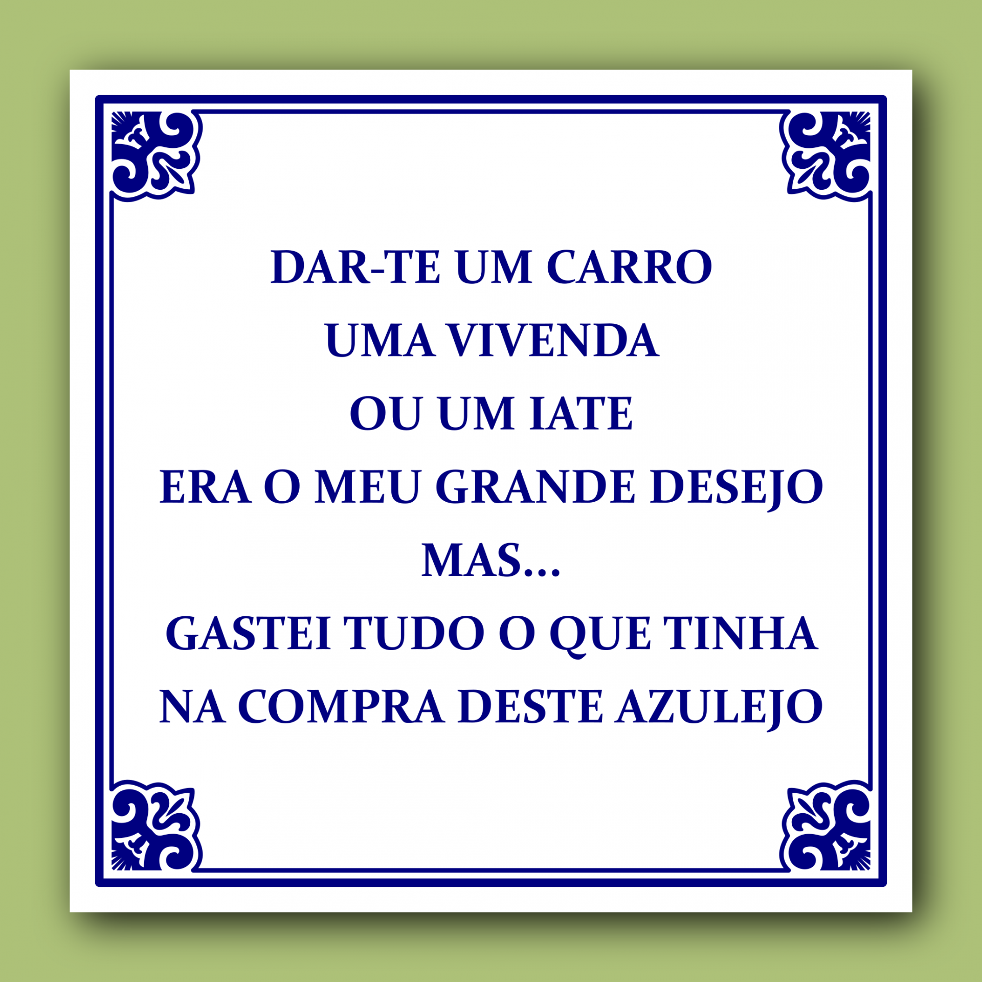Grande Desejo 7,00 € Desconto de %. IVA incluído. Partilhar Comprar Contactar Coleção de Clássicos: Dar-te um carro, uma vivenda ou um iate era o meu grande desejo mas... gastei tudo o que tinha na compra deste azulejo